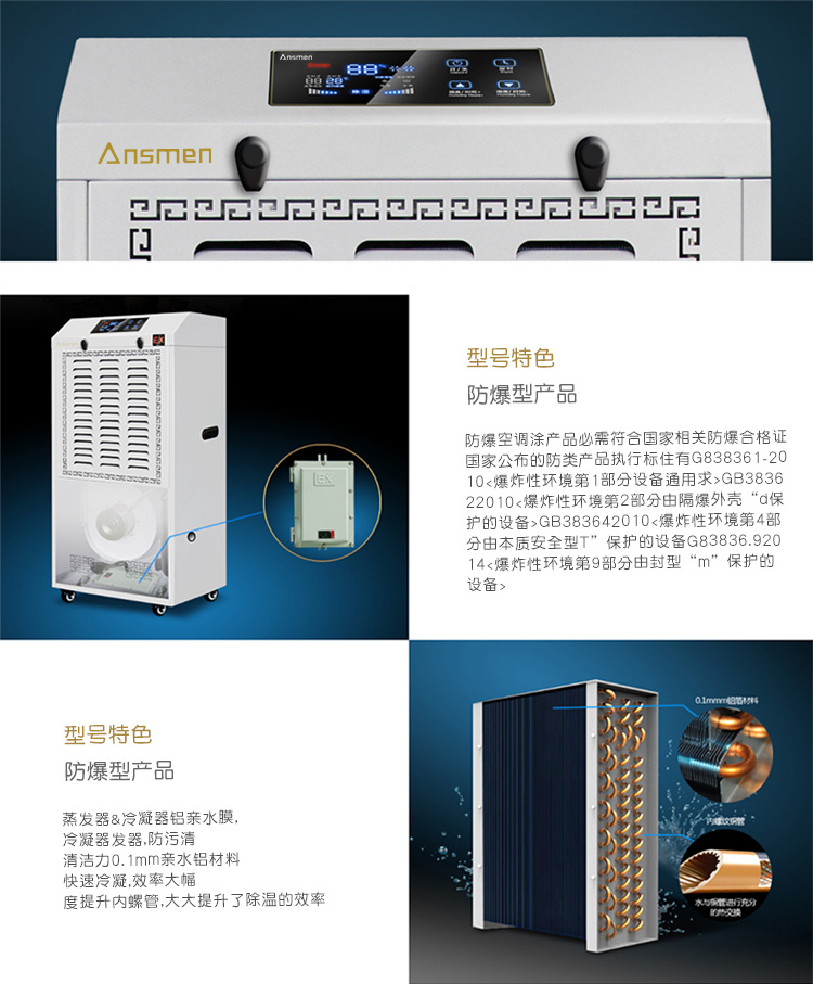 安詩曼是專業(yè)防爆工業(yè)除濕機生產廠家,主要產品有工業(yè)除濕機,高溫烘干機,轉輪除濕機,低溫除濕機,吊頂除濕機,商用抽濕機,商用除濕機,工業(yè)抽濕機,工業(yè)干燥機等產品