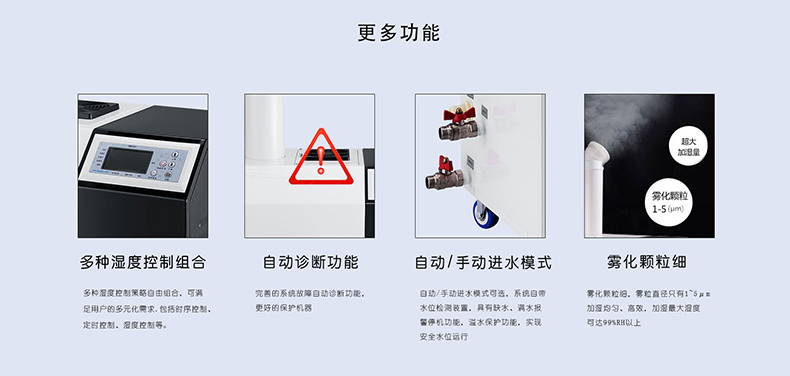 ※ 濕度數(shù)碼全自動控制,控制系統(tǒng)配備進口濕度傳感器,控制精度高、反應迅速。設定后連續(xù)工作, 無 需人員職守
