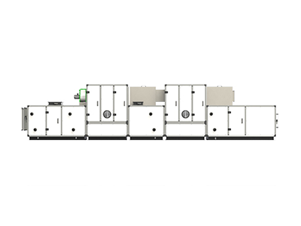 低露點轉(zhuǎn)輪除濕的原理是將經(jīng)過二級轉(zhuǎn)輪處理的再生空氣的熱量傳遞至前級再生區(qū),從而降低未加熱的再生空氣的含濕量。當轉(zhuǎn)輪轉(zhuǎn)到預處理區(qū)時,冷卻預處理區(qū),低溫除濕效率提高。熱量又被加熱前的再生空氣吸收,同時提高了再生空氣的溫度。這樣就有效降低了再生加熱器的能耗,而且除濕后的空氣溫度較低,低露點處理可以使空氣中的含水量降低至0.5~1g,使空氣中的水蒸氣更難結(jié)露,達到降低再生能耗和降低空氣露點值的目的。